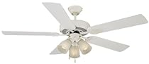 Learn more »Design House 156638 Review: Design House 156638 Millbridge Ceiling Fan, 52-Inch, White. This fan is really beautiful and well built. We bought this fan specifically because we have lower ceilings--a little below 8' and this fan hugs the ceiling nicely. The metal housing has a nice sheen without being too ornate. We used the darker side of the blade to coordinate with a wrought iron chandelier in the dining room, and it looks great.Installation was standard for a ceiling fan, no problems at all. Why only 4 stars? Because it doesn't churn up as much air as I'd like. It feels Ike ... Read more »